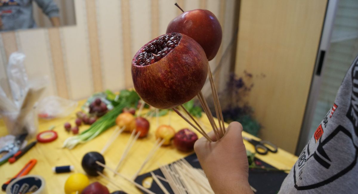 В нашем букете в нарезке нуждался только гранат, как это сделать? Смотри в нашем мастер-классе внизу страницы.