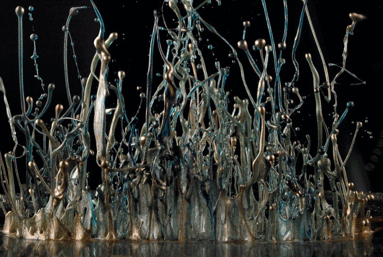 Под воздействием звуковых волн краска перемешивается и создает удивительные узоры. Затем Климас фотографирует получившиеся картины, где каждая фотография становится аналогом какой-либо музыкальной композиции.