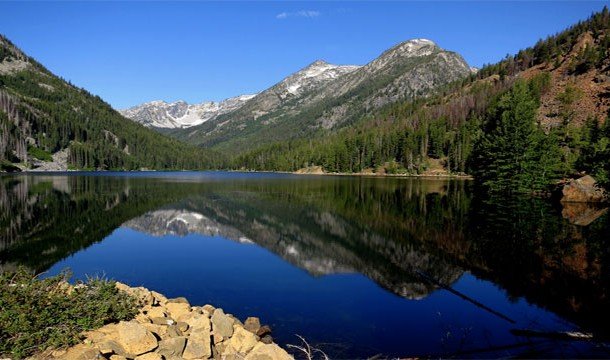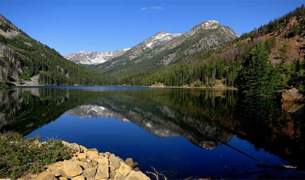 Это скалистое озеро, чьи берега окружены густой растительностью, является любимым местом отдыха среди туристов северо-западной Америки.