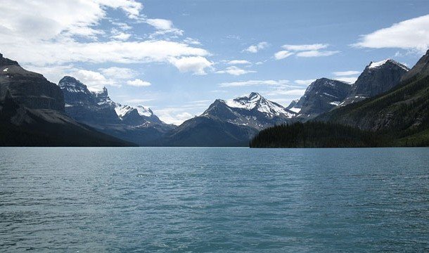 Большая часть воды в это озеро, расположенное в национальном парке Банф, поступает от ледников.