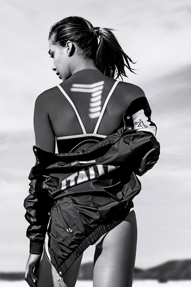 Эта черно-белая съемка с участием Пьетро Боселли и Пенни Лэйн посвящена спортивной форме, которую Джорджо Армани придумал для итальянских спортсменов-олимпийцев