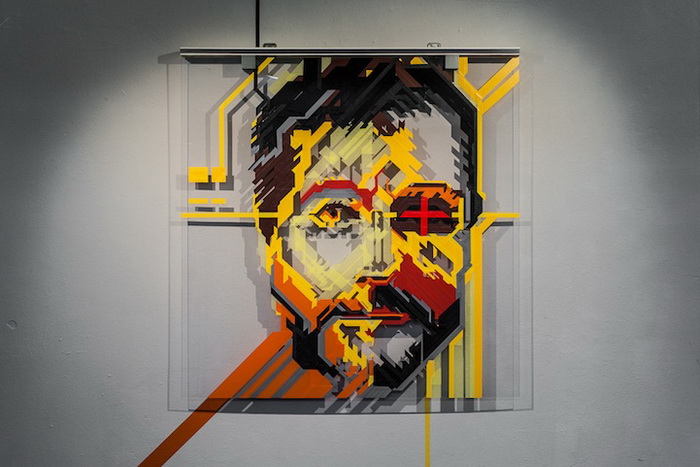 Итальянский мастер коллажа, известный под псевдонимом No Curves, получил широкую популярность благодаря своей любви к скотчу. Он создает выразительные портреты, используя разноцветную клейкую ленту. Экспериментируя с альтернативными формами живописи, No Curves попробовал столь необычный способ создания картин, и он явно пришелся мастеру по душе. А нам, в свою очередь, очень понравился результат.