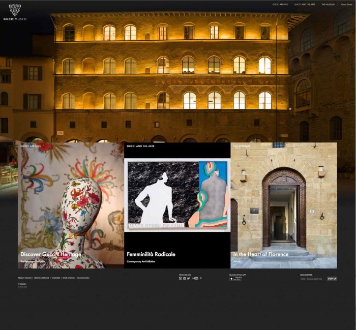 одный дом Gucci объявил, что выводит на международный уровень свой флорентийский музей - Gucci Museo. Поможет этому новый сайт, запущенный 17 марта 2014 года - он переведен на 8 языков и будет расширять международную аудиторию музея.