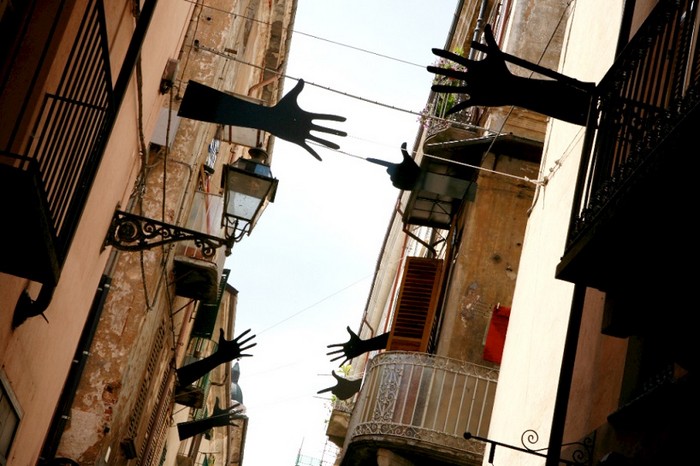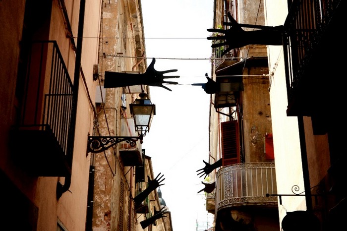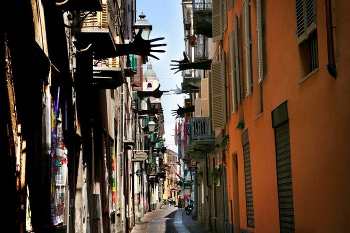 Жестами можно передать огромное количество информации, смыслов и нюансов. Порою они могут быть даже намного более информативными, чем речь и текст. Жестам и посвящена инсталляция Segni от Мейнеро Эмануэля (Meinero Emanuele), представленная автором на узкой улочке в центре итальянского города Кунео.