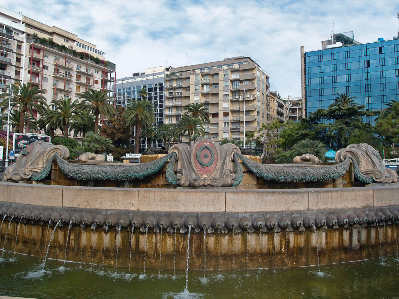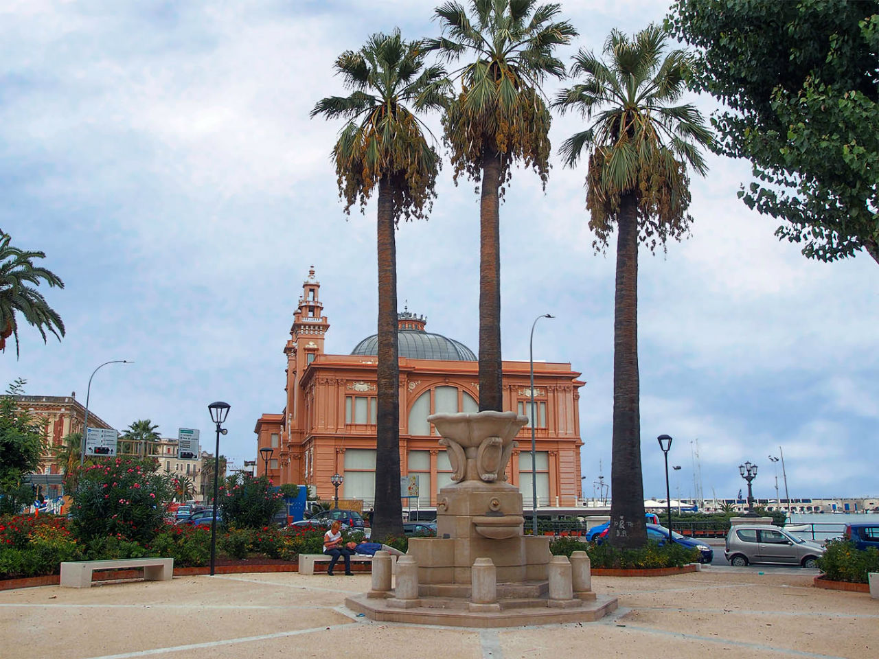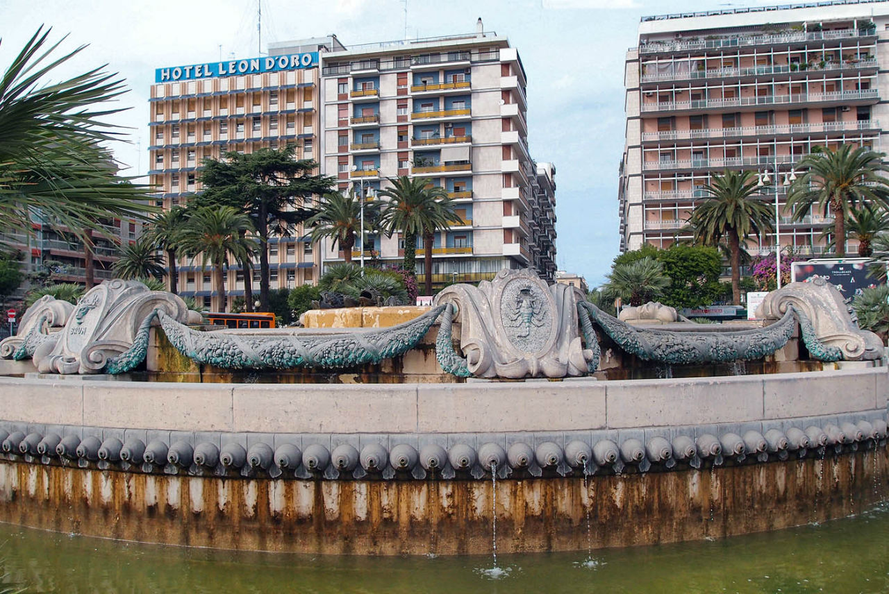 Фонтан и здание банка Италии на проспекте Корсо КавурПеред Университетом Бари, основанным в 1925 году, раскинулась широкая площадь Умберто I, больше похожая на тенистый сквер. Настоящий зелёный островок внутри города.