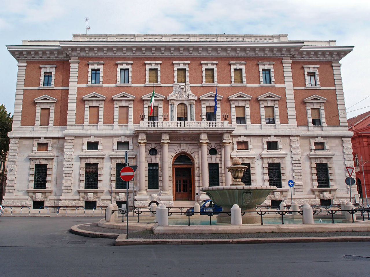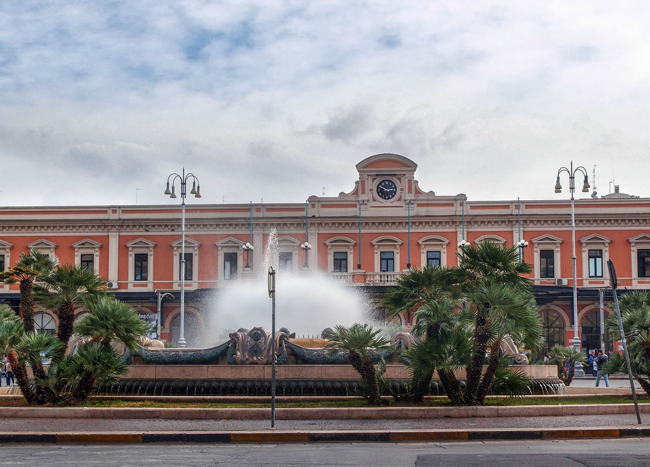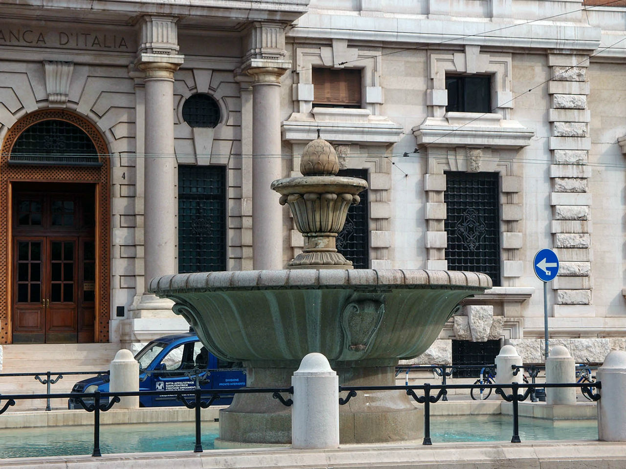Фонтан и здание банка Италии на проспекте Корсо КавурПеред Университетом Бари, основанным в 1925 году, раскинулась широкая площадь Умберто I, больше похожая на тенистый сквер. Настоящий зелёный островок внутри города.
