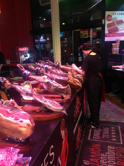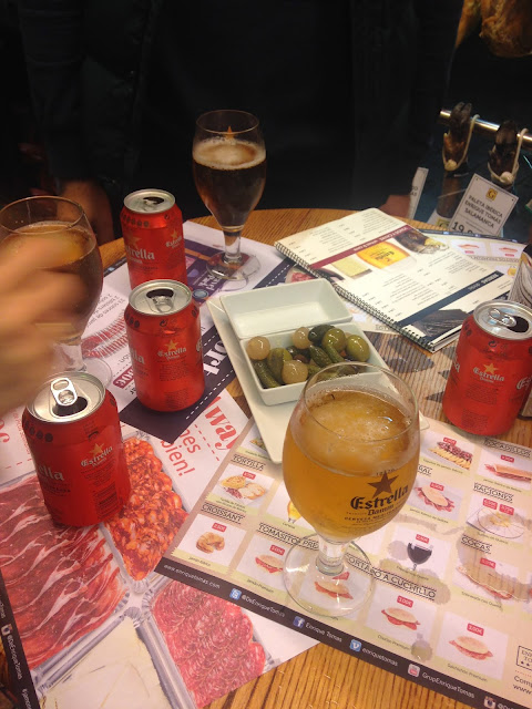 Это наш первый вечер в Мадриде. Мы встретились с друзьями (моя подруга по университету и ее муж) и отправились на поиски места, где можно поужинать. Еду почти что не нашли, зато нашли много алкоголя ;) |