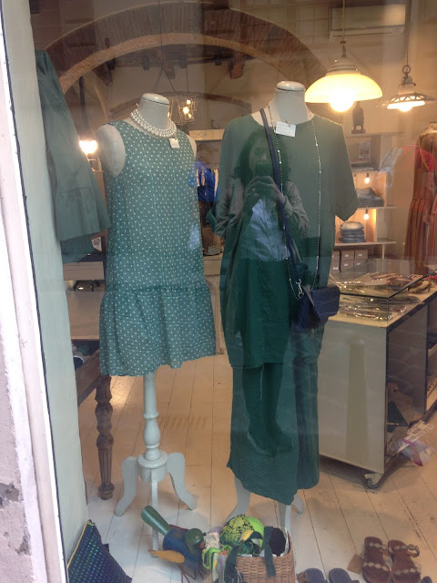 | Витрина детского магазина. Вообще, я постоянно глазела по витринам, из-за чего у В. сложилось впечатление, будто у меня одни магазины на уме, но это же как раз и развивает, вдохновляет и так далее.. Кому-то приятнее посмотреть на картину в каком-то музее, а я существо приземленное - я вижу прекрасное в обычных витринах. |