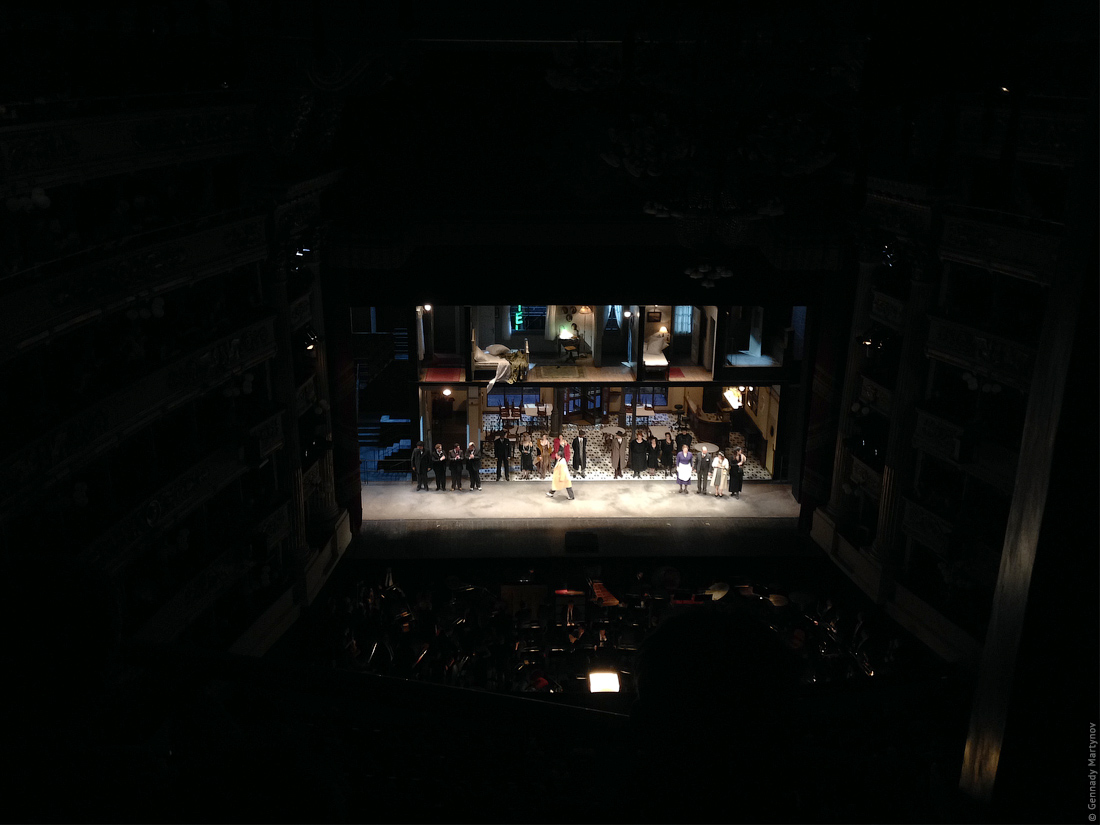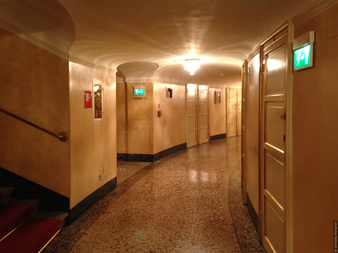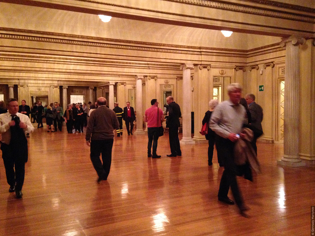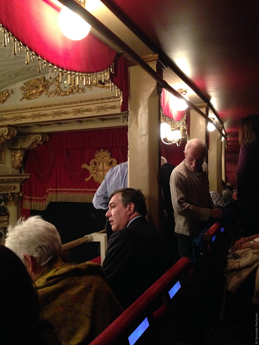 По контрамаркам обычно продают билеты на верхние галереи. Можно попасть на второй ряд верхней галереи, как и посчастливилось мне в этот раз. Оттуда не видно сцены совсем.