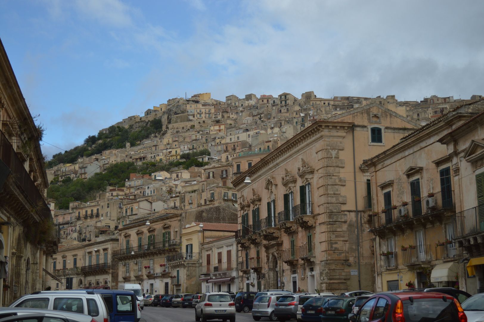 Удивительно порой действуют на организм географические обстоятельства. Кофе в домашней обстановке вызывал в последнее время несварение желудка, а тут без нескольких чашечек крепчайшего - не прожить. Тем более голодным непроснутым утром. Кофе комиссарио намеревался хлебнуть уже в Модике для ускорения процесса. Ибо совершенно непонятно было, что за дорога, как парковаться, почем за рыбу денъги.... Все оказалосъ не так страшно. В 8 утра ослик припарковался на Корсо Умберто, купил парковочные талоны и в полнейшей тишине отправился на разведку. Легенда утверждает, что Модику и еще два города (все они назывались в древности Моция) основал Геракл. Он вел из Испании стадо красных быков (десятый его подвиг), а на Сицилии эти быки разбежались. Местная девушка по имени Моция указала герою, где его быки спрятались, и на месте обнаружения очередного пропащего быка Геракл строил по городу.