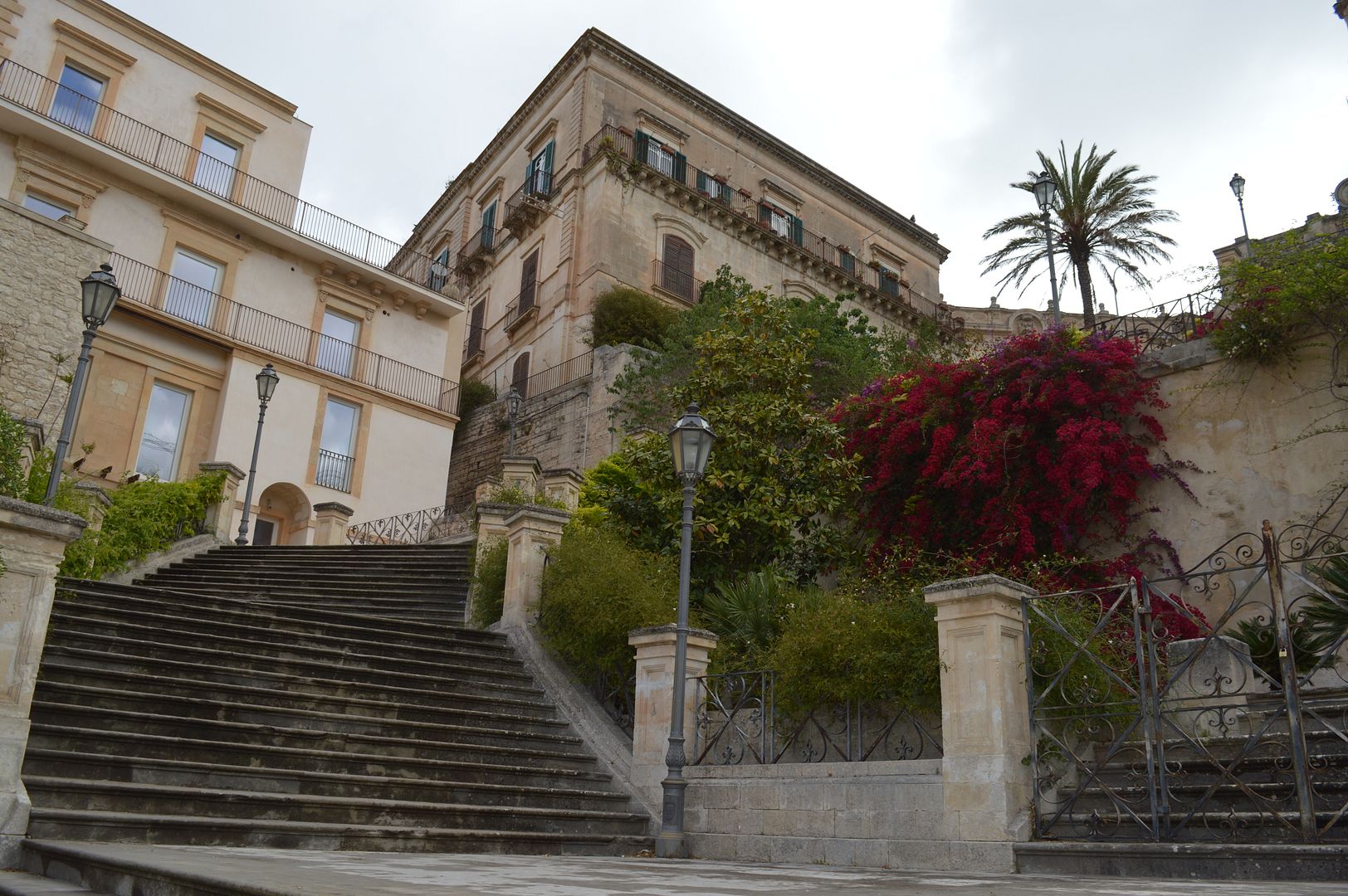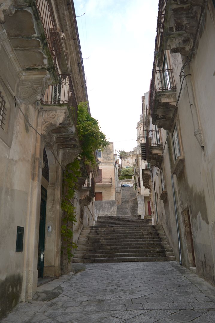 В Альте есть два типа улиц: те, которые на карте извиваются подобно змеям, гордо именуются "корсо" и являются проезжими; те же, что на карте кажутся привлекательно прямыми, скромно кличутся "виа" и чаще всего оказываются пандусами или лестницами. Ходить вверх-вниз по Модике приходится очень много, так что после обхода небольшого городка можно почувствовать приятную или неприятную, это уж насколько вы натренированы, усталость." Ох уж эти лестницы. Количество осиленных за короткий отпуск ступеней превратило меня в лестницененафистника и ступенефоба. как я выжила после всех этих подъемов и спусков - не пoнятно мне самой.