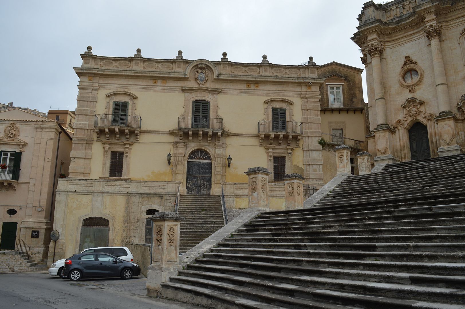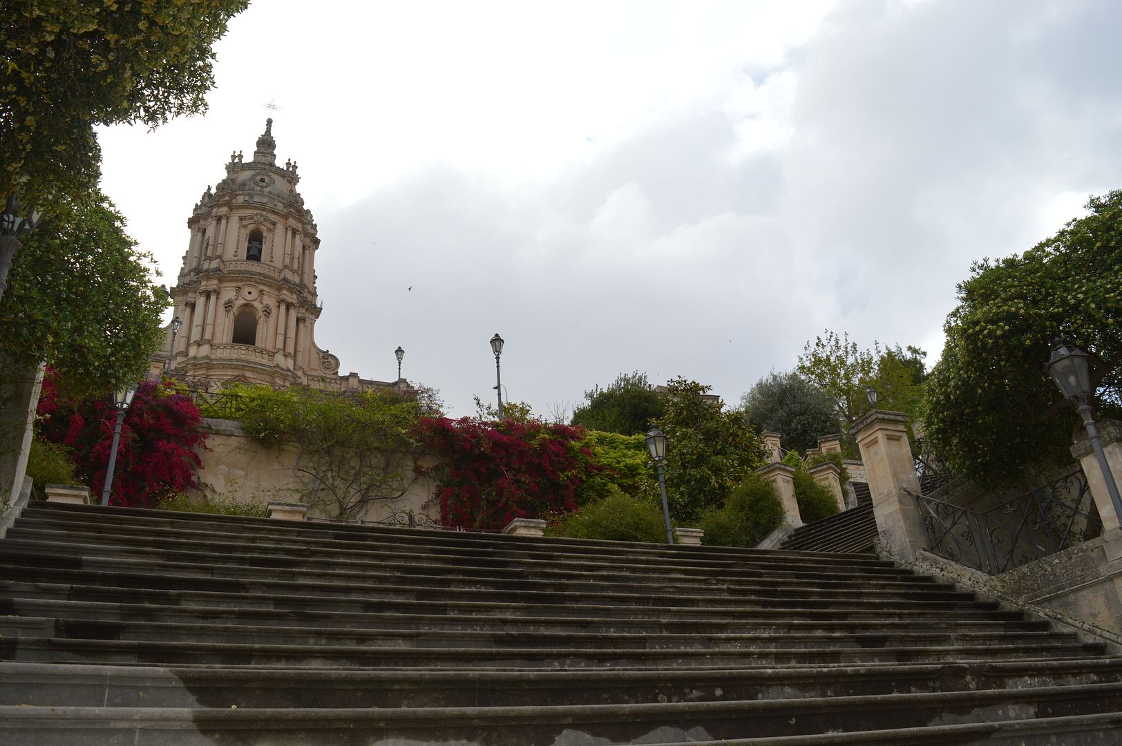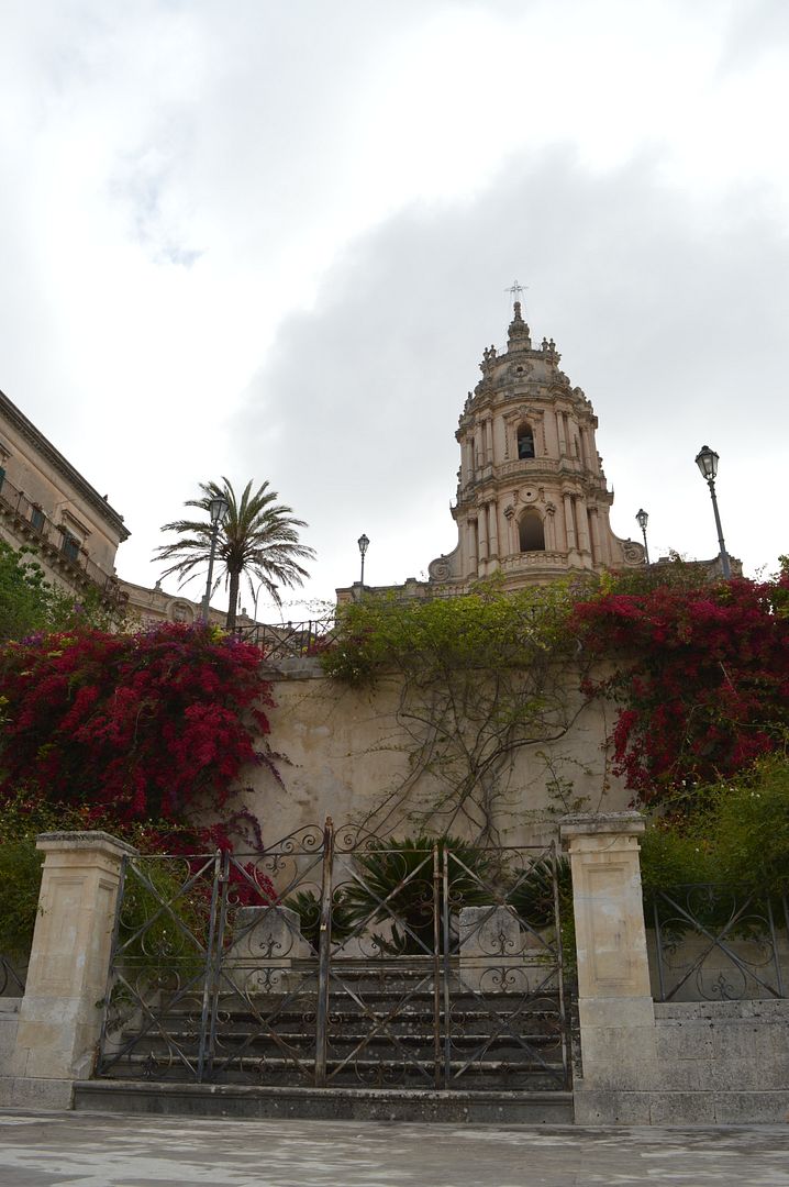 Первый ярус фасада был завершен Паоло Лабизи из Ното в 1761 году, два следуюших были выполнены семейством мастеров Культраро (Cultraro) из Рагузы - Кармело (отец), Пьетро и Константино (сыновья). Монументальная лестница из 254 ступеней, по которой я настоятельно рекомендую вам хоть раз подняться (есть и окольные более удобные, но менее живописные пути), была устроена в 1818 году архитектором Франческо ди Марко." <.......>