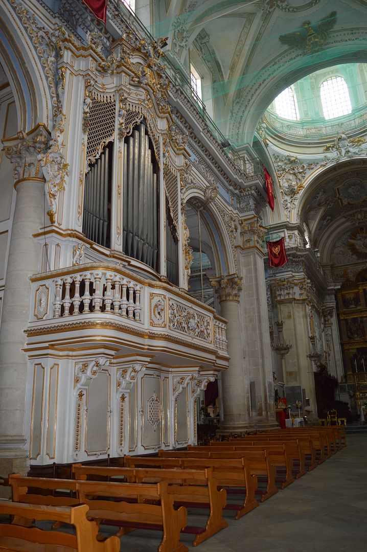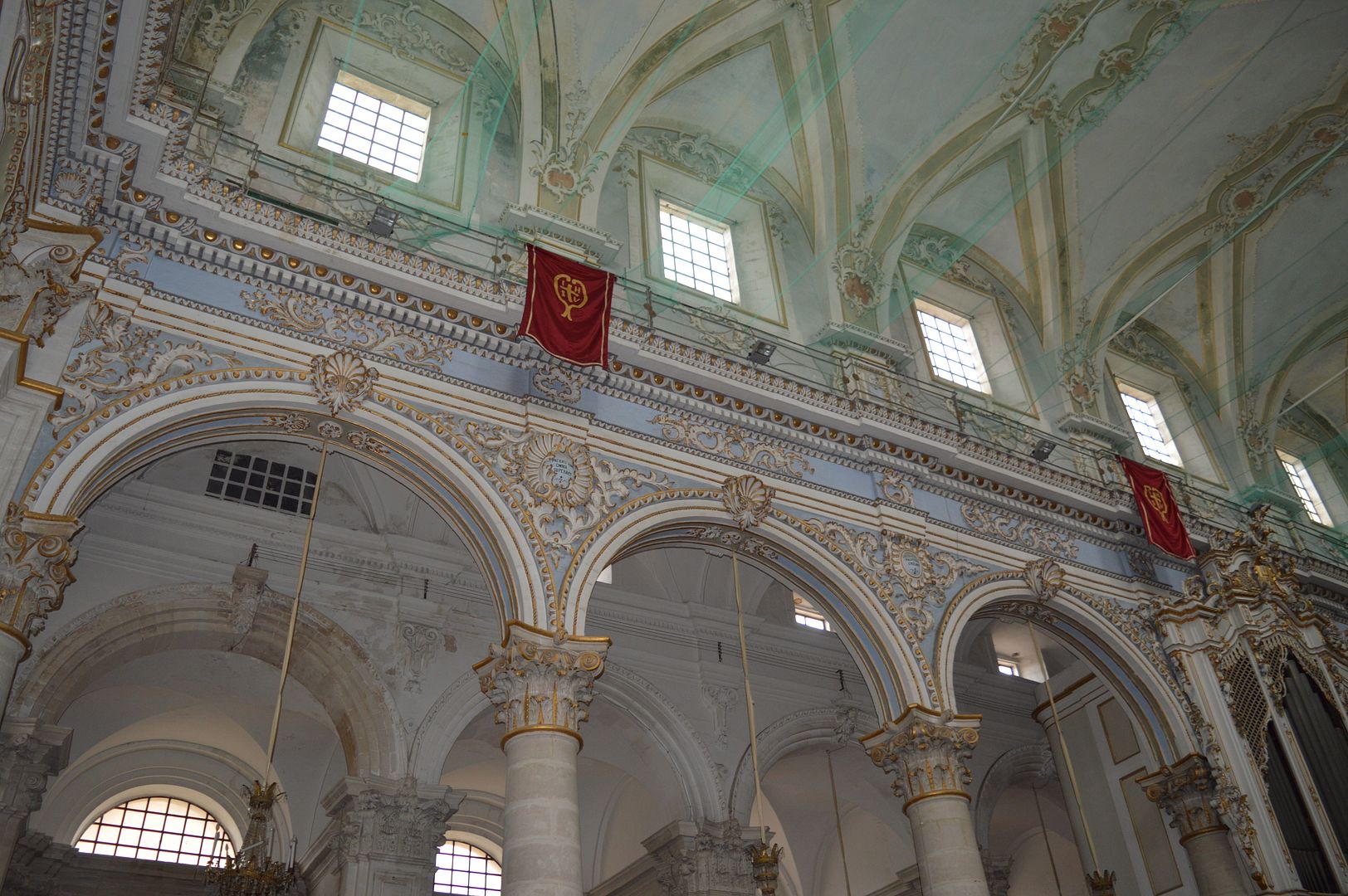 Работы были прерваны великим землетрясением 1693 года, так что потом все пришлось начинать заново уже по новому проекту: три нефа превратились в пять, а колокольня оказалась встроенной в основное здание. Парадоксально, но архитектор, построивший самую красивую церковь Валь-ди-Ното, так и остается великим неизвестным. Новый Сан-Джорджо был освящен в 1738 году, но, как водится, строительство растянулось еще на долгие годы.