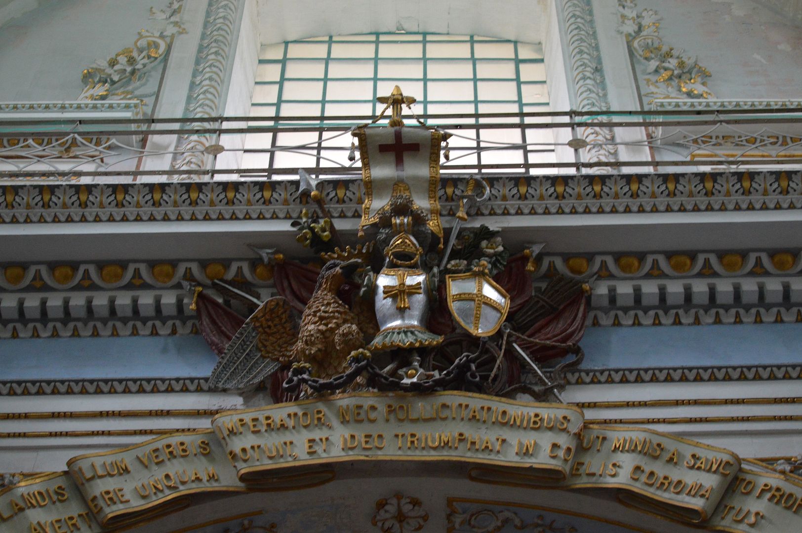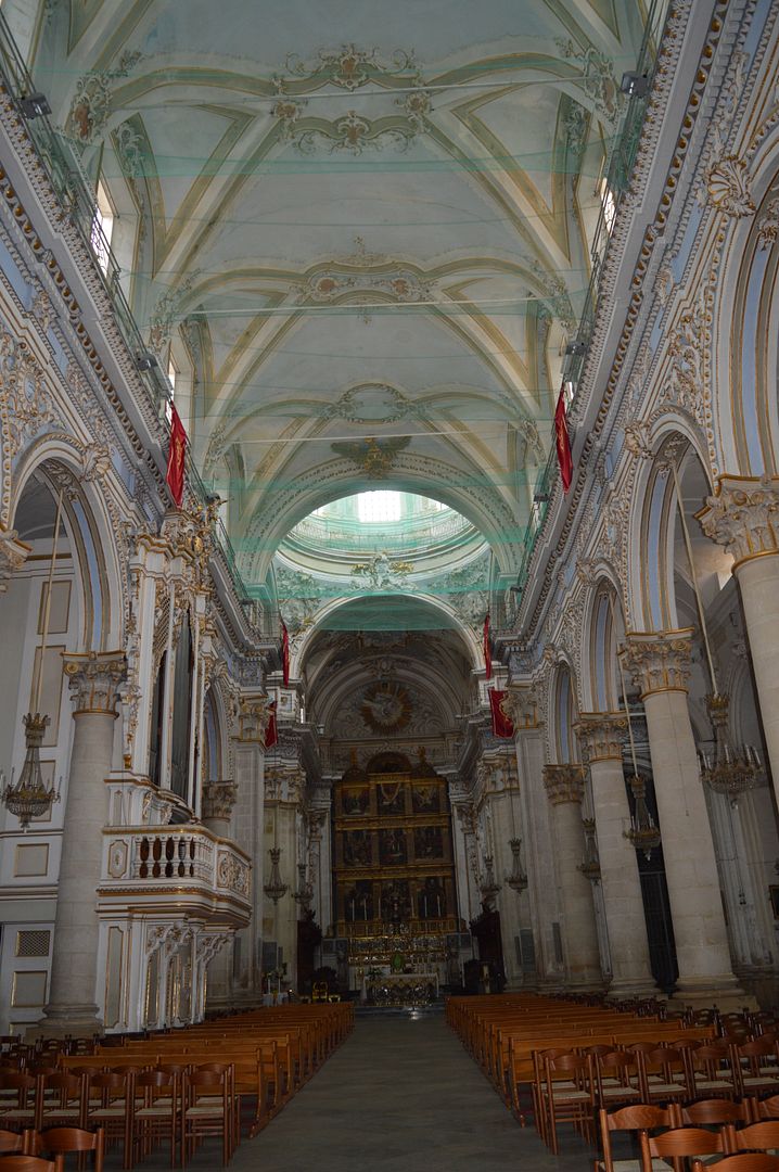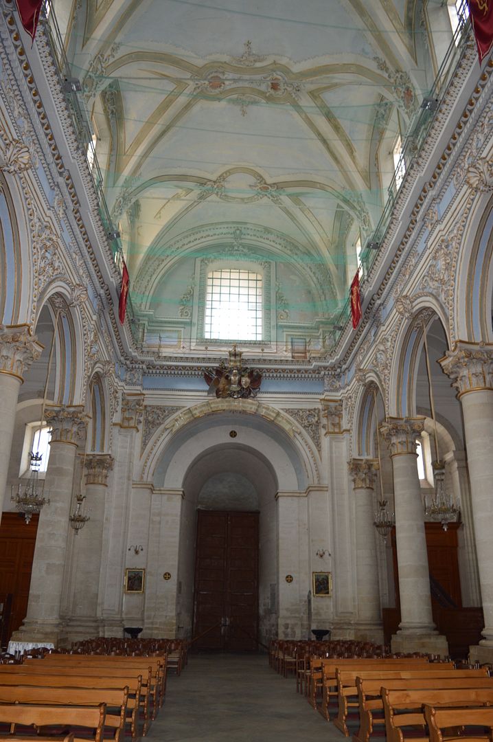 Внутреннее пространство делится на пять нефов 22 колоннами с коринфскими капителями. Отделка богата лепниной и позолотой. В церкви примечателен большой орган (конец 19 века). <.......>