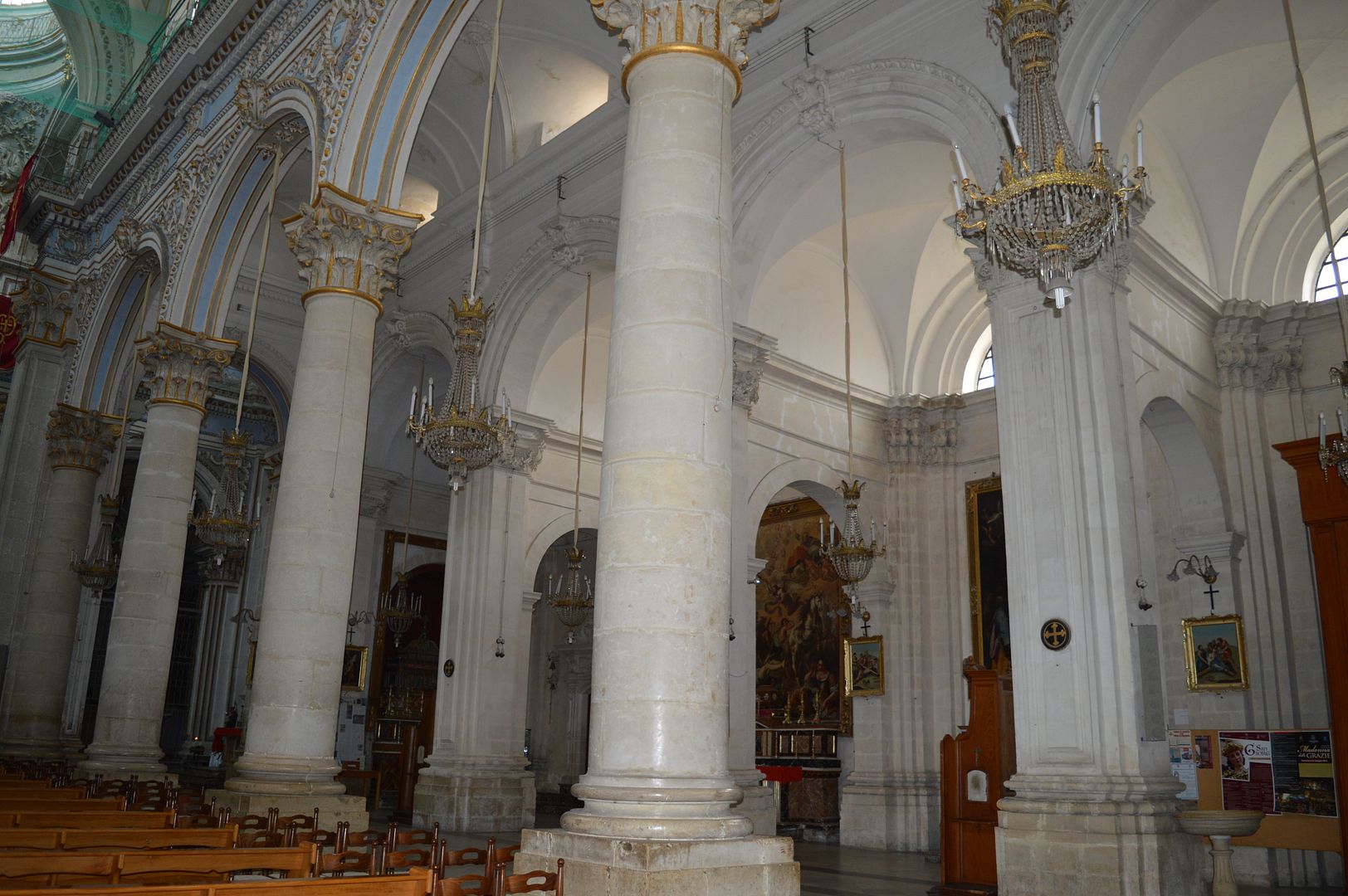 На полу перед алтарем в 1895 математик Армандо Перини нарисовал полуденный солнечный меридиан; луч солнца, которое светит в проем гномона, находящегося справа, в южной части, отмечает на полуденной линии местный юг. краиняя левая точка полуденной линии на плите пола содержит географические координаты церкви, и, таким образом, города. Вера и Наука, Религия и Технология в Сицилии идут всегда рука об руку. Особые любители астрономических наук почти всегда принадлежат к религиозным общинам