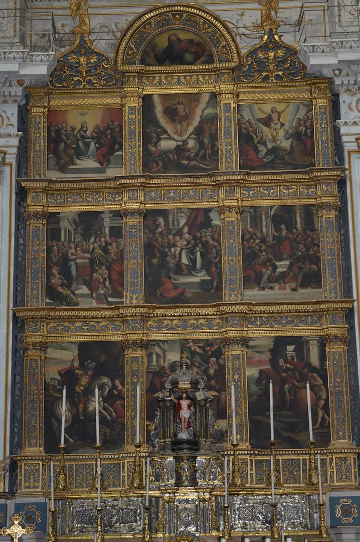 Полиптих за алтарем, состоящий из десяти картин, из которых восемь - посвящено новозаветным событиям, а две - титульным святым (Георгию и Ипполиту). По одной версии, это 1513 год, по другой - 1573. <.......>