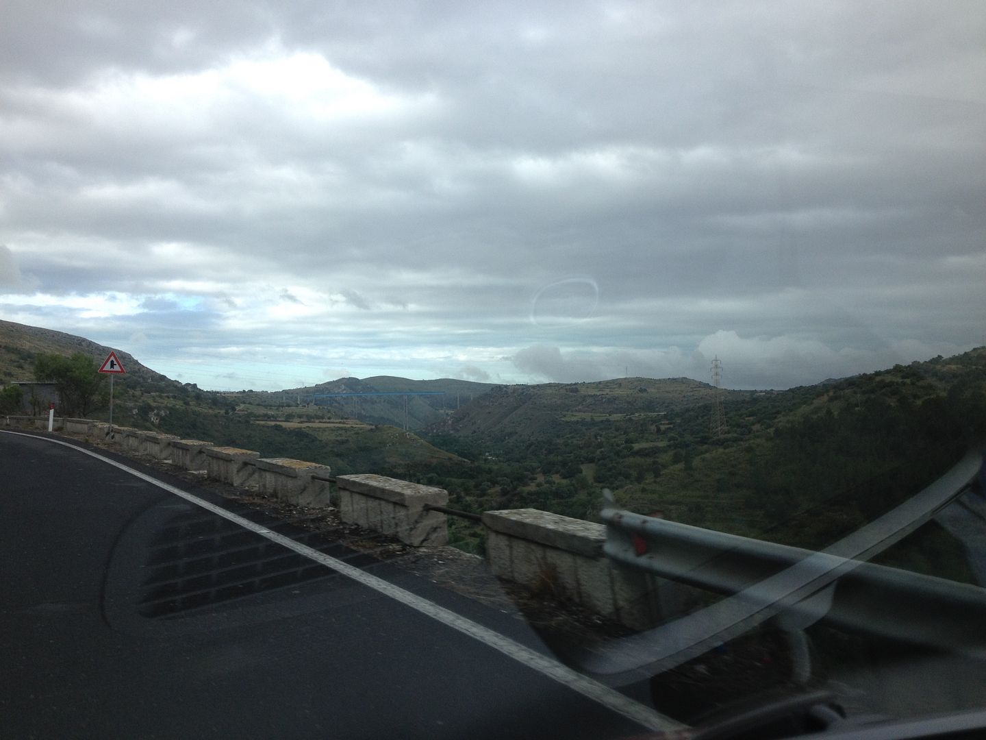 Нижний и верхний город соединяет мост Гуэрриери, один из самых высоких мостов в Европе - его высота составляет 300 м. (вот по дороге я его и видела, на втором снимке)