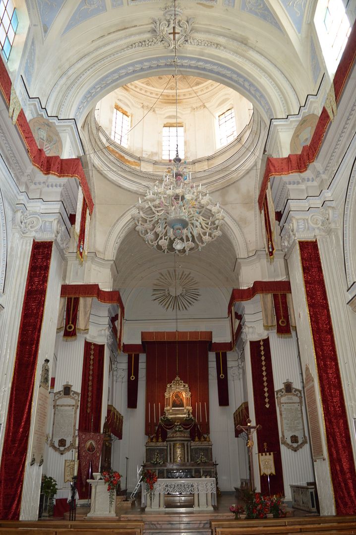 Особую ценность представляет свод нефа церкви, украшенный фресками в начале девятнадцатого века братьями Ваккаро. В течение всего мая-месяца священное здание является местом паломничества верующих, чествующих Деву Марию, с 1644 она является покровителем наряду со Святым Яковом — Сан-Джакомо. <.....>