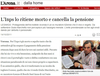 Однако это еще не все: соц.служба направила письмо наследникам пенсионера, в котором требовала возместить последние пенсионные выплаты. Теперь для «возвращения к жизни» в юридическом смысле слова, итальянцу необходимо предоставить в INPS подробную документацию, доказывающую его «живость». Рассказывая о случившемся журналистам издания L'Arena, пенсионер дал выход своим эмоциям: «Когда я услышал о том, что меня признали ушедшим в иной мир, то не знал плакать мне или смеяться. В моем случае была приостановлена выплата пенсии живому и здоровому человеку, в то время как в Италии раскрывается множество случаев мошенничества, когда некоторые граждане десятилетиями получают пенсии умерших родственников».