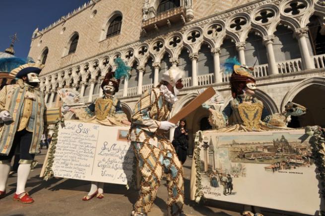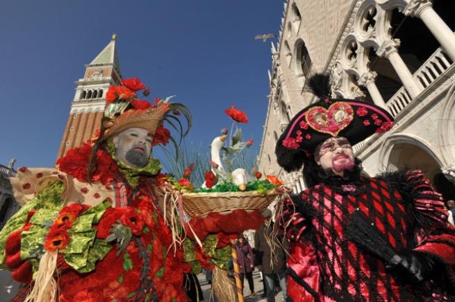 Несмотря на сибирские холода, которые обрушились в последнее время на Апеннины, в Венеции вчера стартовала официальная часть знаменитого карнавала. Как пишет итальянское издание Ansa, около 23 тысяч гостей и жителей города приняли участие 11 февраля в этом незабываемом красочном действии на площади Сан-Марко, которая, можно сказать, является «сердцем» праздника. На ней была установлена огромная сцена в фоме «Большого театра», на которой вчера и проходили одни из главных события: парад масок и карнавальных костюмов, чередовавшихся с первыми группами артистов, занятых организацией музыкальных представлений. Помог в обогреве замерзжих туристов и венецианцев традиционный «Фонтан вина», из которого многим довелось наполнить свои бокалы.