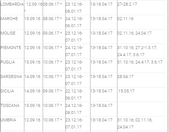 Вот календарь начала/завершения школьных занятий на 2016-2017 год, опубликованный на сайте Министерства образования.