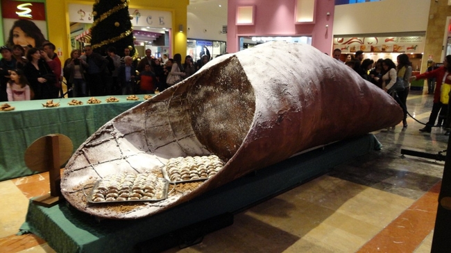Торговый центр "ФОРУМ", расположенный на улице Виа Пекораино в Палермо, отпраздновал свои первые пять лет в бизнесе. Празднует, надо сказать, способом необычным, но очень приятным для всех посетителей. Клиентов центра встречало грандиозное угощение: мега-канноло ( прим: сицилийская сладость, жареная трубочка, с начинкой из заварного крема или рикотты), который был задуман и создан за шесть дней мастер-шеф-кондитером Гаспаре Мартинесом.