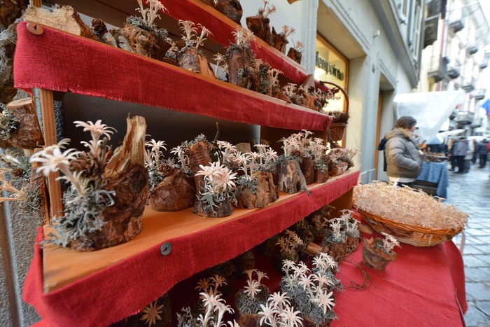 Ярмарочные киоски, установленные на открытом воздухе, пестрят товарами, которых более 1100 разновидностей. Изделия представляют все направления традиционного мастерства ремесленником Аосты: скульптура и резьба по дереву, обработка мыльного камня, ковка железа и выделка кожи, ткачество, производство кружев. Здесь вы найдете бесчисленное множество оригинальных продуктов: от одежды до деревянных башмаков и плетеных корзин, предметы домашнего обихода, деревянные лестницы, бочки, грабли, сани для перевозки сена, разделочные доски для мяса и сыров и многие другие товары.