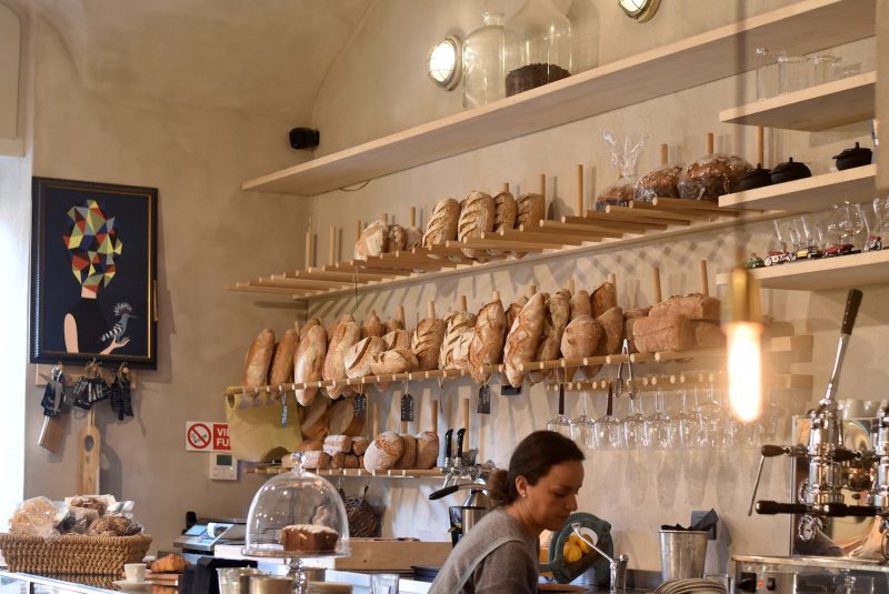 Кофе и круассан: € 2,30; тосты: 4,50 €; мясная и сырная нарезка с непросеянным ржаным хлебом: 13 €; хлебные лазаньи: € 12; "маргарита": € 8, пирог из слоеного теста с кремом Шантильи и малиной: € 6;