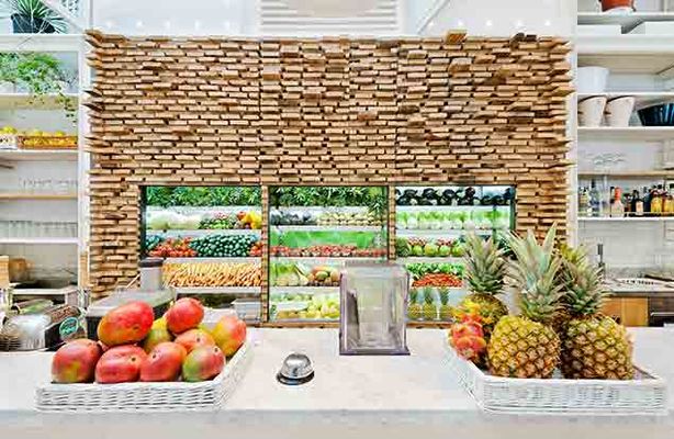 Ресторан-бистро здоровой пищи Ginger для вегетарианцев, веганов и сыроедов. Овощи используются не только в меню, но и в оформлении интерьера кафе.