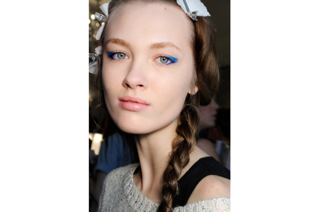 Еще один вариант графичного макияжа, предлагаемого визажистами, это яркие тени: черного, темно-зеленого или синего цвета. Здесь яркие тени наносятся на всю область века, они взгляд очень ярким. Такой макияж отлично подойдет для клубной вечеринки.