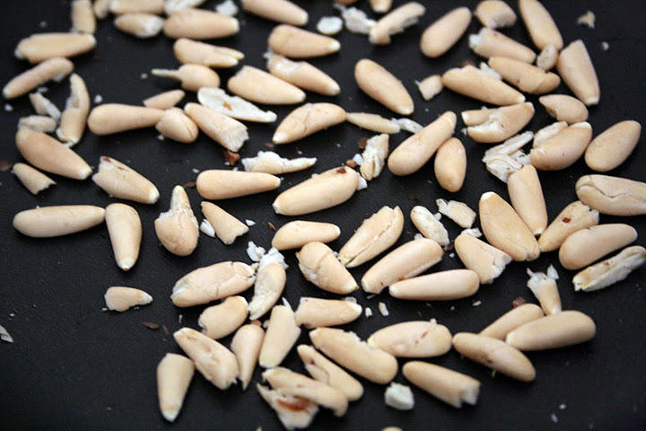 Кедровые орехи слегка обжарить на сухой сковороде