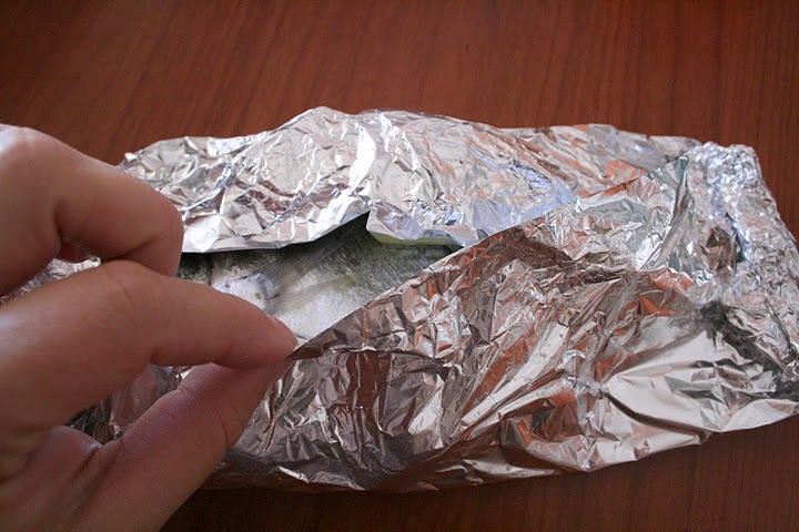 Готовую рыбу подают в фольге (развернув края), рядом выложить дольки лимона.