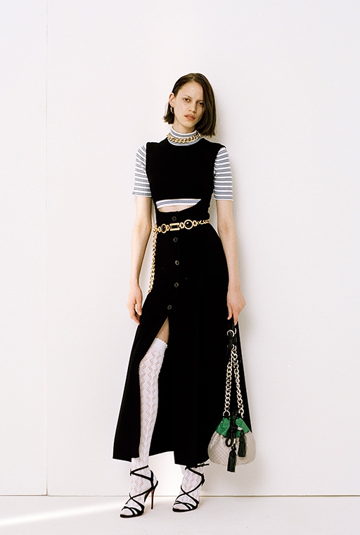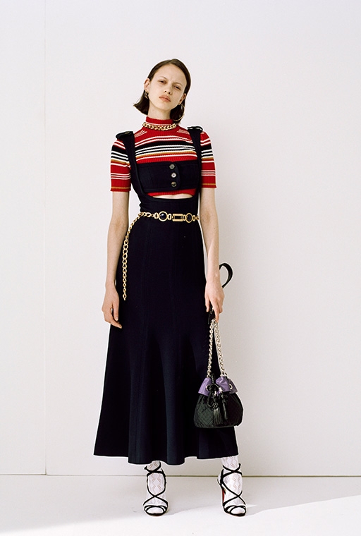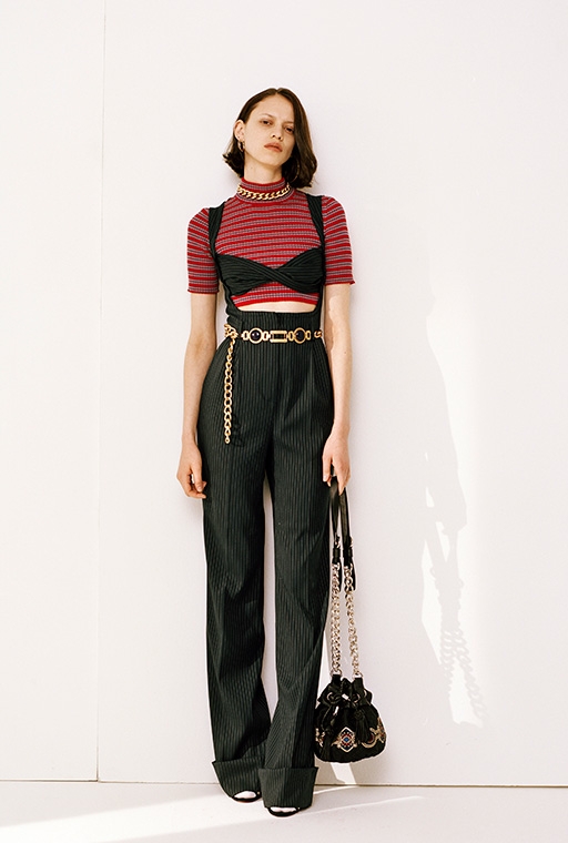 Своим любимым предметом в коллекции сама Алессандра называет комбинезон, который предлагает носить с укороченным полосатым свитером и золотой цепью на поясе: «Это сочетание полностью отражает настроение коллекции да и попросту выглядит очень здорово». Впервые в новом сезоне добавились в ассортимент, предлагаемый маркой, и сумки — небольшие аккуратные торбы на массивных цепочках.