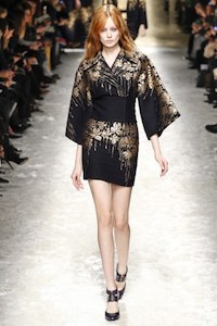 Красивые и коротенькие платья гейш и акцент азиатского стиля с его расписными тканями и мягкостью шелка, китайские кимоно в укороченном виде. В коллекции присутствуют довольно интересные модели платьев выполненные в китайском стиле с цветами и отделкой из меха.