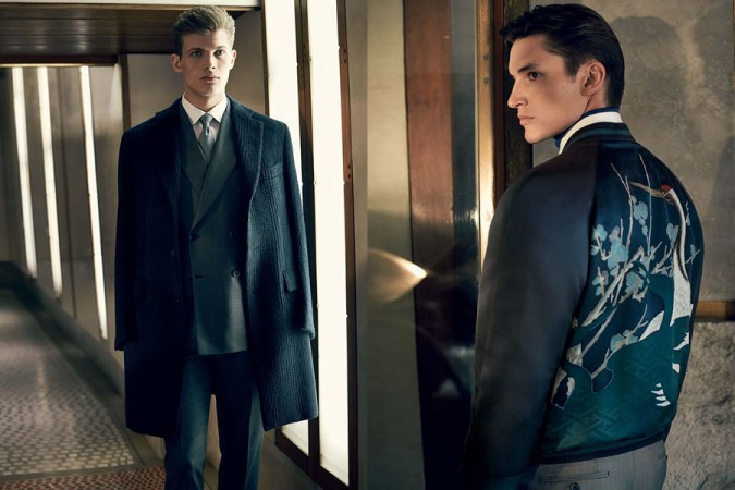 Коллекция стильной мужской одежды от известной марки Brioni осень-зима 2014-2015 ждет вашего внимания. Команда дизайнеров бренда нашла в своих архивах фотопостановки работ, привезенные из многочисленных поездок в Японию, которые начались в 1963-ем году. Сделано это было под чутким руководством самого Гаэтано Савини, одного из основателей компании, и фотографа Паоло Роверси. Соединив модные силуэты 60-х и японские мотивы, как результат, коллекция мужской одежды Brioni получила оригинальное, самобытное, элегантное звучание.