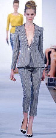 Широкая вертикальная полоска далеко не всегда удачна. Мало какой фигуре польстит такой рисунок на одежде — разве что идеальной.