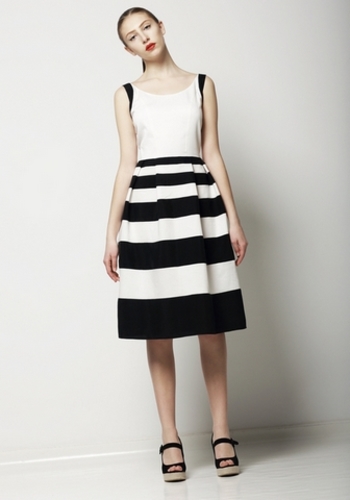 4. Платья-тельняшки. Прямые или даже облегающие платья в черно-белую или сине-белую полоску — классика жанра. Подобные наряды хороши и для повседневной прогулки, и для вечеринки. Если вам кажется, что полоска слишком доминирует в вашем образе, наденьте поверх платья однотонный жакет.