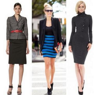 1. Для работы и учебы. Полоска — неотъемлемый элемент делового стиля. Полосатые рубашки, юбки-«карандаш» и платья-«футляр» обязательно должны присутствовать в гардеробе деловой леди. Полоска в таких вещах обычно узкая и не слишком контрастная.