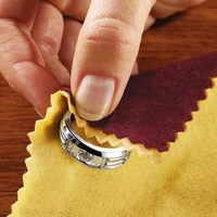 - После того, как вы сняли ювелирное изделие, его нужно протереть замшей или фланелевой тряпочкой. Ни в коем случае не протирайте золото и серебро суконной тряпочкой, так как она поцарапает полированную поверхность изделия. Протирать ювелирные изделия нужно каждый раз, когда вы снимаете их с себя, так как, подержав украшения в руках, вы оставляете на них влажные следы от пальцев, а их нужно обязательно убрать.