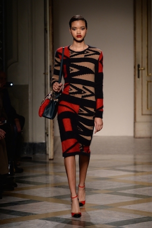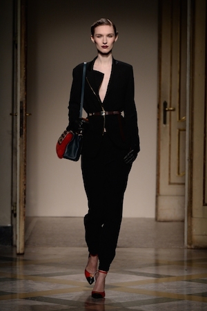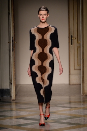 Различные направления перемешались в палитре материалов и цветовых решений, линий и деталей. На подиуме были продемонстрированы пальто-платья строгих силуэтов, оживленные кистями, контрастными вставками и застежками-молниями (последние делают одежду трансформируемой и универсальной благодаря грамотной конструкции). Платья-футляры с геометрическими вставками украшены пайетками — они были вдохновлены кушеткой Фрейда, как и мохеровые пуловеры с ромбами; стеганые пальто, трикотажные кимоно с шифоновыми развевающимися рукавами и макси-пальто, изготовленные из жаккарда или трикотажа, ассоциируются с пленэром импрессионистов.