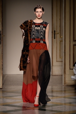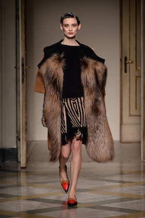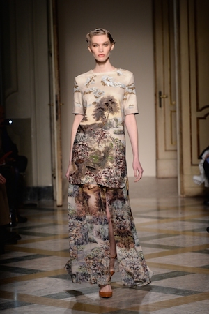 Также на подиуме были представлены мотивы из творчества Джексона Поллока, например, абстрактные цветы, украсившие одежду прямых очертаний и габаритного объема, юбки-карандаш и длинные платья с высокими разрезами. Главным героем коллекции стал норковый мех со множеством вставок.
