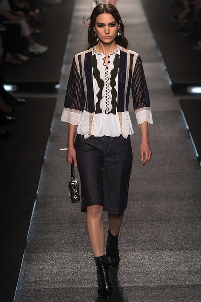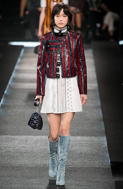 В новой коллекции Louis Vuitton вы найдете образы, достойные “детей цветов”, – настоящих хиппи, а также наряды для “хороших девочек” – которые обожают кружевные платья и блузки с бантиками, при этом не стесняются демонстрировать ноги, нося исключительно мини-юбки. Если вы также испытывайте ностальгию по ретро-трендам, то в наступающем сезоне вы сможете с удовольствием носить брюки и джинсы-клеш, а также юбки-трапеции.