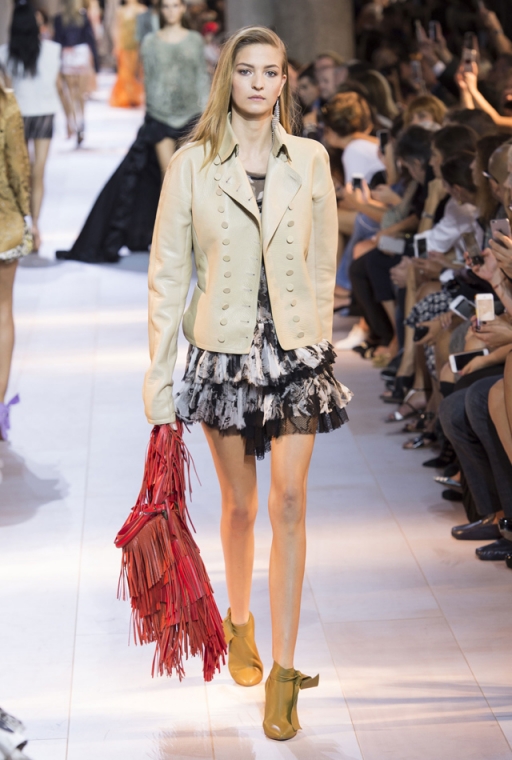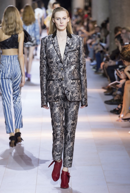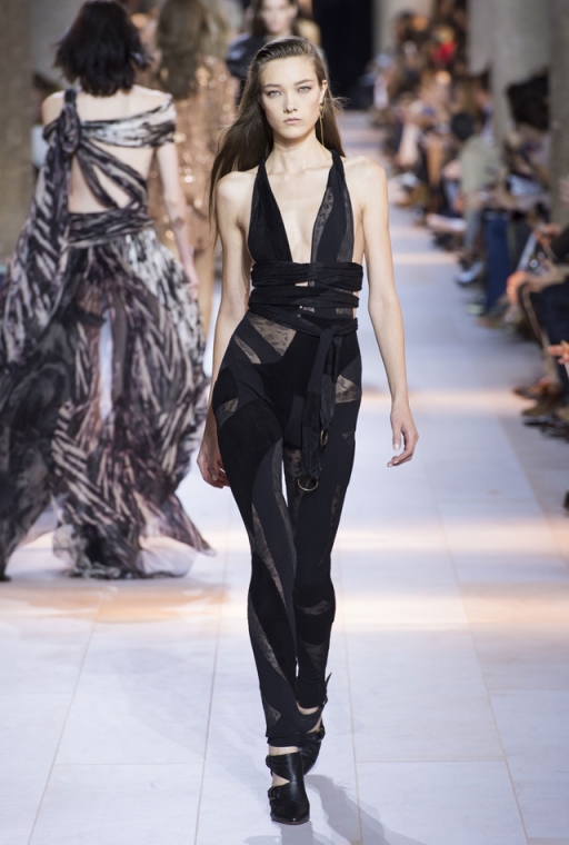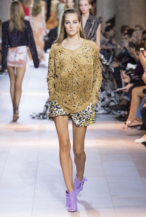 Первая же коллекция Дундаса для Cavalli после его возвращения показала, что в жизни дома начались новые, куда более интересные времена. Вместо прежней кричащей сексуальности, дикой мешанины самых агрессивных принтов и прочих привычных радостей клиентов дома ждет одежда более легкая, порой даже со спортивным уклоном. Впрочем, ни принты, ни та самая знаковая для дома сексуальность, ни легкая фиксация на обнаженном теле и просто теле бесследно никуда не исчезли. Просто все это теперь выглядит вещами не для зрелых женщин, желающих показать себя миру, а для девушек, которые хотят повеселиться. Отсюда и некоторая безудержность в духе 80-х, чувствующаяся в доброй половине всех представленных сегодня, в сентябре 2015-го, образов. К ним же Дундас притянул и свой опыт, полученный на предыдущем месте работы, — принтованные комбинезоны-чулки в духе Эмилио Пуччи в новую картину тоже вписались идеально.