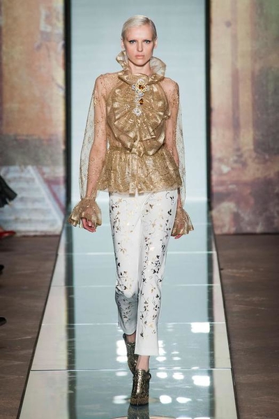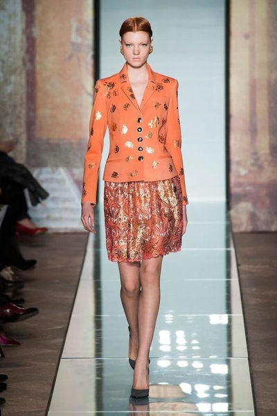 В своей коллекции осень-зима 2014/2015 дизайнер решил отдать предпочтение классическому, женственному и элегантному стилю, добавив немного ярких красок и присущей итальянской моде роскоши, богатства в отделке и деталях.